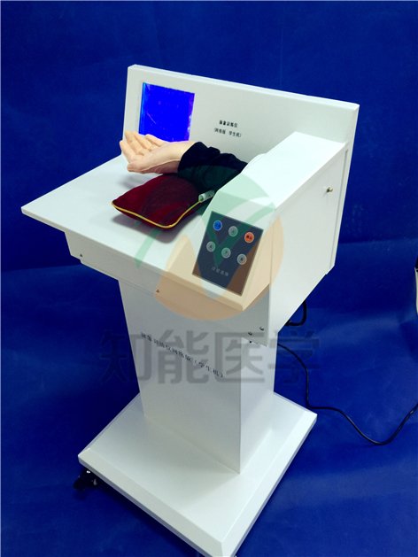 網絡版脈象訓練儀是中醫藥大學、針對目前各中醫院高校教學現狀合作研制開發的。本套系統不但能夠模擬臨床中各種脈象,使學生提高對脈象實際認知能力,還可以為廣大教師和學生提供一個中醫脈象學習、實踐和教學測試的平臺。該系統的功能還可以根據客戶需要進行擴展。網絡版脈象訓練儀分為兩個部分,主控機遙控平臺和單機接受脈象訓練儀。脈象訓練儀外觀大方,底部滑輪方便儀器的移動。仿真手的選材質感柔和,使脈象訓練更貼近于臨床。全按鍵選擇的設置和友好的操作界面適合教學及訓練。脈象訓練儀不僅可以受控于主遙控發射平臺,也可以獨立工作。主控機通過無線發射控制系統可以在200米范圍內